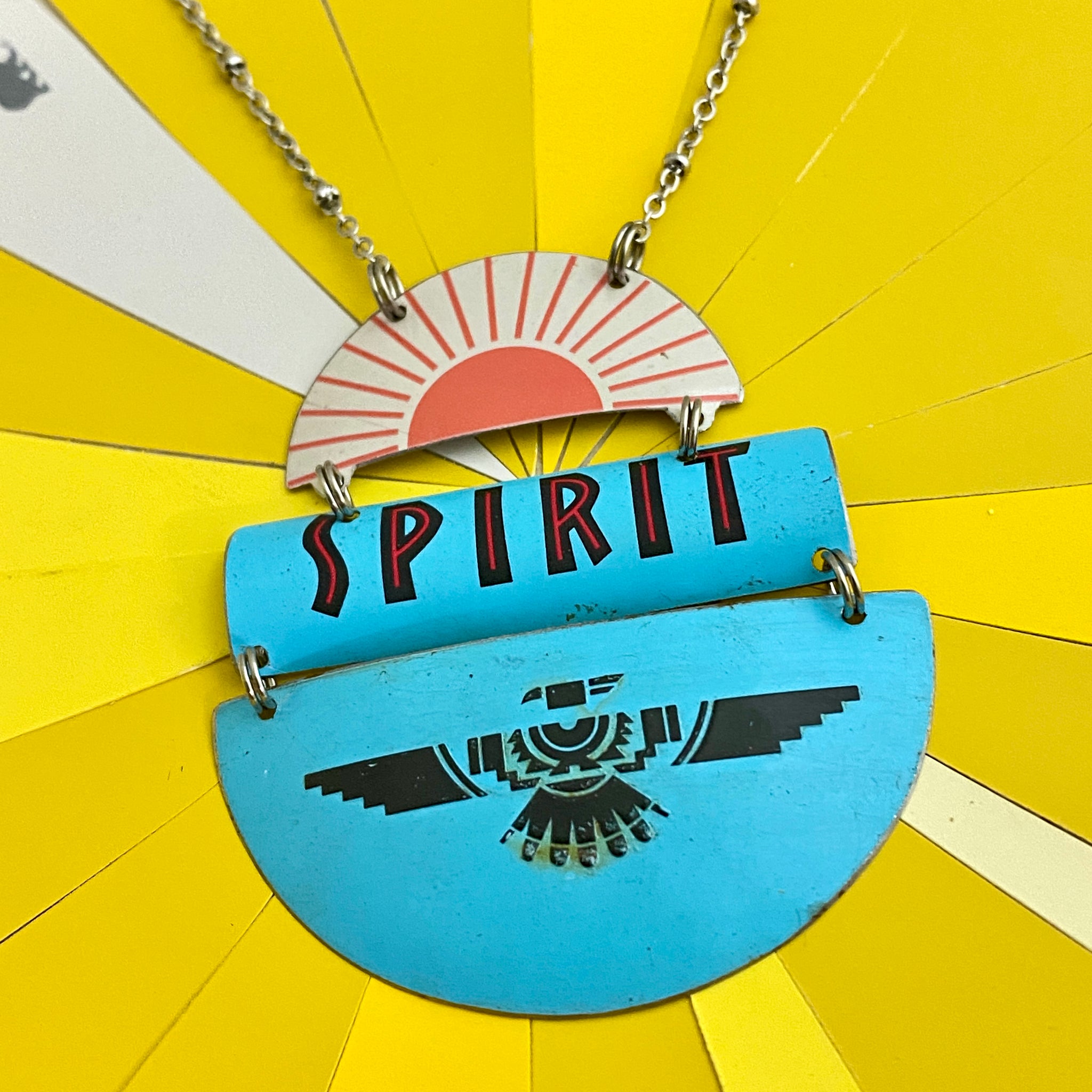 The pendant is strung on a 1.5mm 16” long stainless steel chain with a lobster clasp and a 2” extension chain