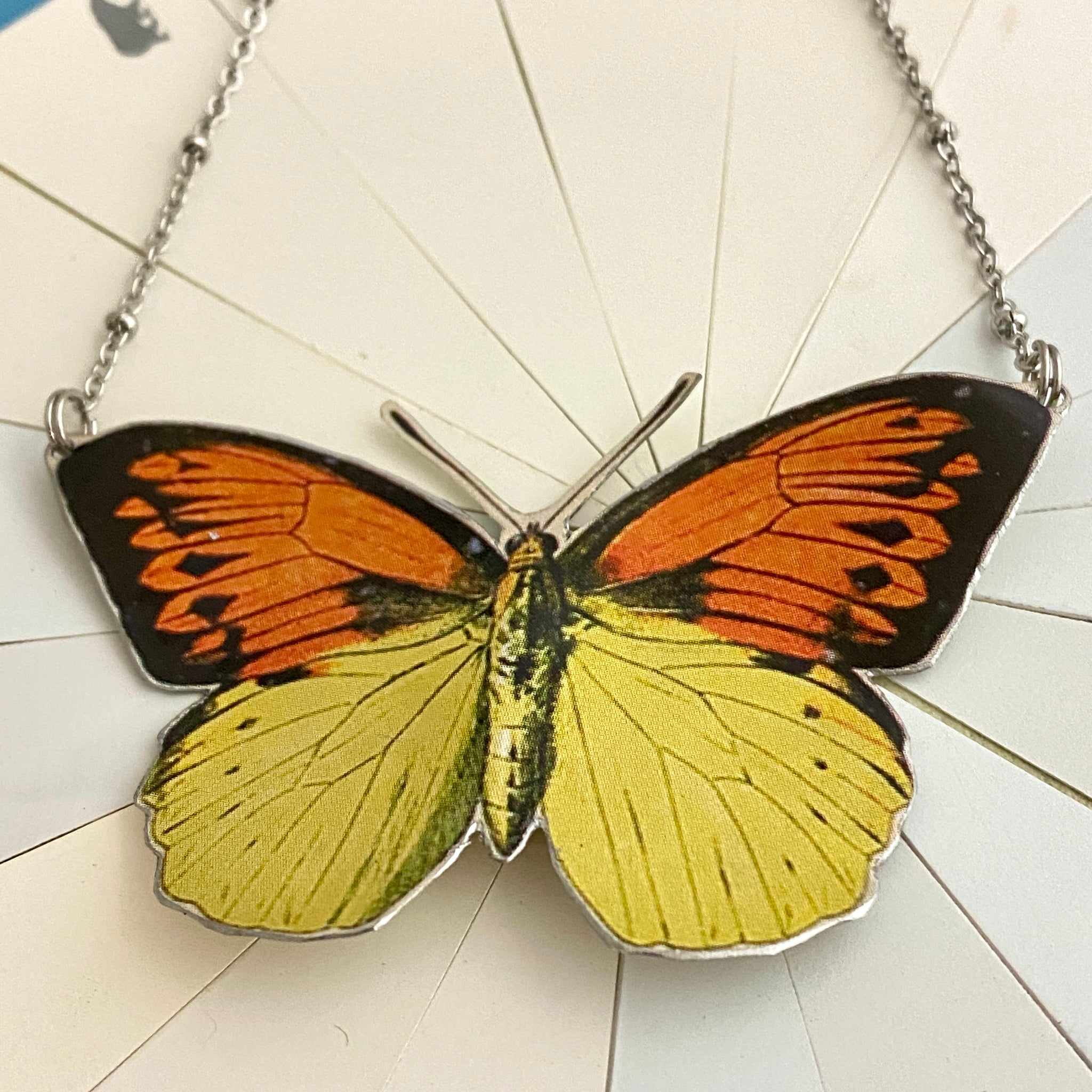 Yellow & Orange Butterfly Upcycled Tin Necklace